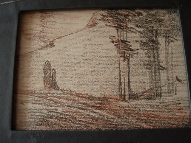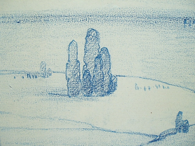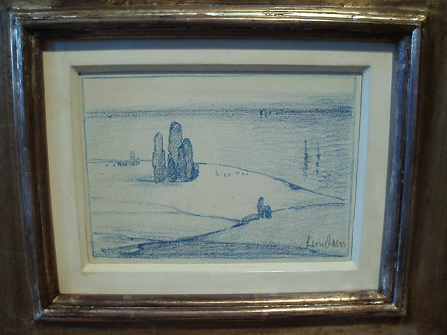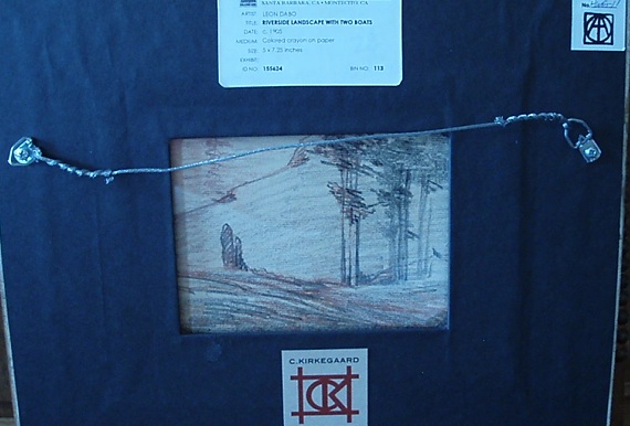 Item #AT-0188"Riverside Landscape with Two Boats" Colored Crayon on Paper by Leon Dabo, NA (1864-1960)