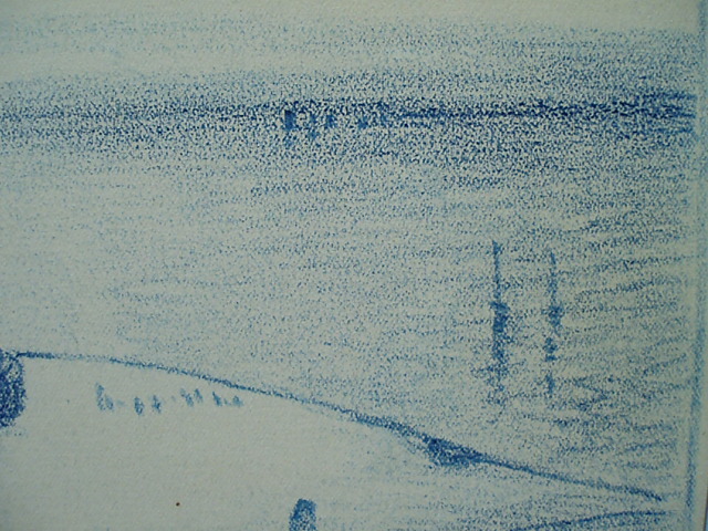 Description: "Riverside Landscape with two Boats"( View Form Staten Island toward NYC and Jersey On the reverse is another full drawing of hills and tree's. Colored Crayon on Paper by Leon Dabo, NA (1864-1960)Circa 1905 Framed in hand carved water gilt frame. *Listed in the new book, The Drawings of Leon Dabo, Sullivan Goss An American Gallery.