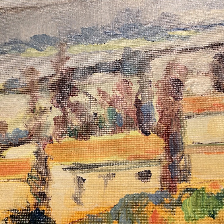 Dabo was commissioned by the Army’s Fourth Division under Major General Mark L. Hersey to execute five paintings depicting landscapes of historic sites during the first World War. Dabo continued to paint and exhibit in this country and Europe until his death in 1960, where he strove to realize new color sensations, mastering his use of light, texture and atmosphere.
